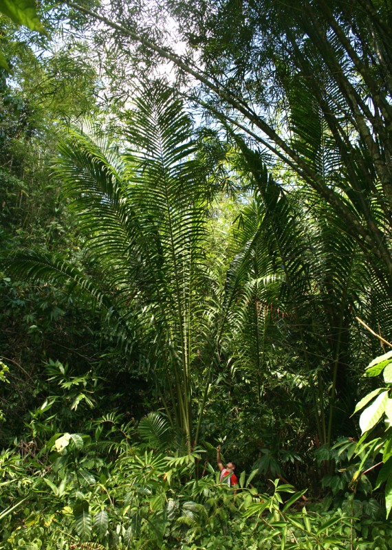 Kao što sam i slutio prešli smo preko grebena na njegovom, najvjerojatnije, najvišem djelu, a čekalo nas je jako strmo i sklisko spuštanje. Spuštamo se po nekakvim kozjim stazicama pokrivenim suhim lišćem ( ma i koze bi me čudno gledale da ih navučem ovamo ). Nemojte zaboraviti da su mi ruke pune pa se nemam čime pridržavati. Par puta padnem na guzicu, kliznem par metara nizbrdo, a stanem tek kad se zabijem u nešto. Maksimalno se trudim ostati smiren i fin, ali na kraju ipak eksplodiram ! ! ! Našem vodiču počnem je..t sve po spisku, tako da je mom starom već neugodno. Ipak iz moje perspektive gledano mislim da nisam pretjerao: pao sam na trticu tri puta, dvaput se zabio u nekakve bodljikave palme, jednom kliznuo direkt u mravinjak ( a tu su mravi ludi, crvena vrsta ), potpuno sam mokar, ima preko 40 stupnjeva, a njemu je sve to skupa "cool". No ipak, nakon naše "jednosmjerne" konverzacije shvatio je da je vrag odnio šalu. Malo mi ga je čak žao jer vidim da se "usro živ" :)