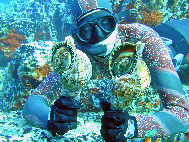 Ronio sam na jednoj strmoj obali Hvara gdje imam jednu rupu u kojoj se često nalazi škarpina. Vidio sam je, ali nalazila se nezgodno za gađanje velikom puškom, pa sam se kasnije vratio na to mjesto sa drugom, kraćom puškom. Škarpina se makla na drugu stranu rupe, pa sam morao napraviti novi zaron u kojem sam ugledao škarpinu, ali i nešto iza nje. Znao sam odmah da sam pronašao ovog ultra rijetkog puža i bio sretniji nego da sam uhvatio najvećeg kapitalca. Bio je poluzakopan i mislio sam da je samo prazna kućica, ali na moje još jedno u nizu iznenađenja puž je bio živ. Slijedio je kratki photosession i nazad u more sa njim. Pustio sam ga u veću dubinu da ga ne bi pronašli neki drugi koji bi ga sigurno uzeli. Dok sam ga fotografirao, izašao je vidjeti što se događa i izbacio ticala i sitne oči. Zaista nevjerojatan i prekrasan prizor. Nakon tog prvog susreta, sljedeće sezone našao sam ih još nekoliko na području Korčule i Lastova, a u jednom ronjenju dva primjerka jedan pored drugog. Prepričavajući ove susrete ljubiteljima mora osjećam se kao da mi zavide, ali ako se uzme u obzir da su stvarno rijetki ljudi koji su se susreli sa tritonom, moram priznati da sam sigurno jedan od sretnijih ronilaca na Jadranu.