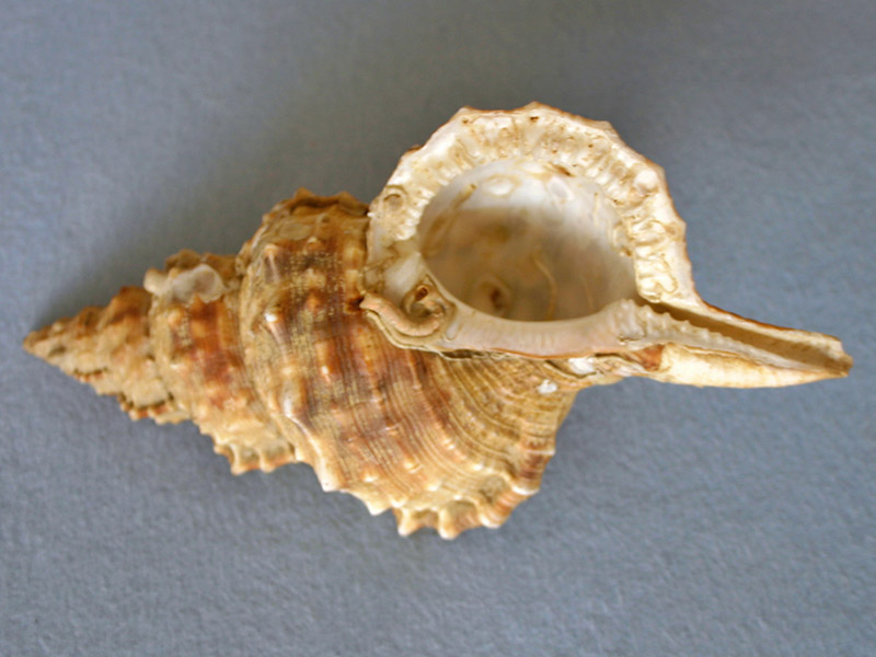 Ova vrsta tritona je toliko rijetka da se ne bih kladio kako u Jadranu trenutno živi više od desetak puževa. Prvi službeni nalaz ove vrste dogodio se krajem osamdesetih u ulovu jednog koćara iz Hvarskog kanala. U međuvremenu je nađeno još nekoliko komada. Ova vrsta je dosta zdepastija i kraća od tritonove trube, ali i dosta teža. Na sebi ima karakteristične kvrge za razliku od tritonove trube koji je po cijeloj ljušturi gladak. Također mu je i ulaz u kučicu drugačiji, bezbojan je osim crnih nazubljenih dijelova na samom rubu otvora. Ova vrsta živi dosta dublje pa je i to jedan od razloga zašto ga se rjeđe ulovi. Budući da u zakonu piše izričito da je tritonova truba zaštićena, pretpostavljam da ova vrsta nije, ali sumnjam da organi reda mogu utvrditi razliku. Ako se to nekakvom ludom srećom i nesrećom ikad dogodi, pozovite se na ovaj tekst, ali budite sigurni da i sami znate razliku. Svejedno, bilo bi dobro da žive puževe više nitko ne dira jer najljepši i najkorisniji su u moru.