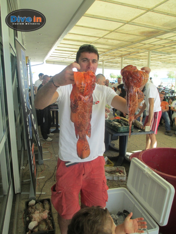 Povratkom svih natjecatelja uslijedio je ručak: tri pečena prasca povratili su energiju izgladnjelim i umornim roniocima. Nakon toga uslijedilo je vaganje koje je osim lovaca zaokupilo i pažnju mnogoborjnih prolaznika, obzirom da je Uskok inače među zadranima popularno odredište za popodnevnu šetnju i kavu. Gomila svakojake ribe nikoga nije ostavila ravnodušnim. Daniel Gospić i Radoslav Jakupović nanizali su škrpine, kantare i tabinje, dok su se neki drugi lovci orijentirali na kraj, pa je tako Joško Grljušić ostvario izniman ulov velikih cipala i brancina, dok je Ivica Smolić oduševio okupljene podlanicom od 2.5 kg, te brancinom od 4 kg.