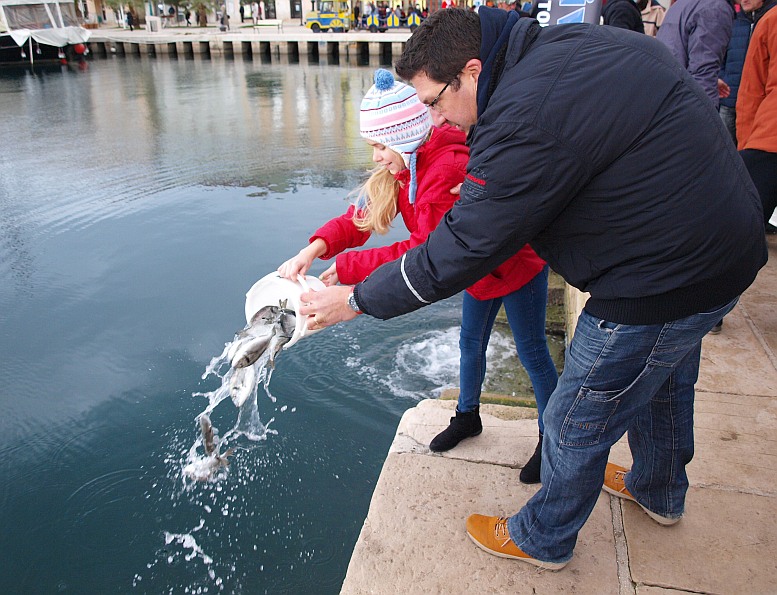 U luci Mali Lošinj pušteno je tisuću malih orada iz uzgajališta, čime je Sportsko-ribolovno društvo "Udica" građanima najavilo novogodišnje kupove u podvodnom ribolovu, koji će se održati u ponedjeljak i utorak. Iz ribogojilišta poduzeća "More", oradice su dopremljene na glavni gradski trg, gdje su ih članovi "Udice", uz sudjelovanje djece iz klupske škole udičarenja, pustili na slobodu. Svečanost otvaranja novogodišnjih kupova održat će se u sportskoj dvorani Bočac u nedjelju u 19 sati, dan kasnije održat će se Kup nacija, prvi nakon višegodišnje stanke, a u utorak Kup gradova. (otoci.net)