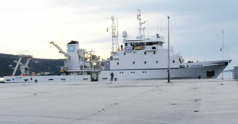 „Urania” je brod italijanskog nacionalnog istraživačkog centra. Može da prihvati 40 putnika, a u misiji je 17 članova posade i 21 naučnik iz pet zemalja. Brod je dug 70, širok 11, gaz mu je 5,5 metara, zajedno sa multibin sondom na dnu.