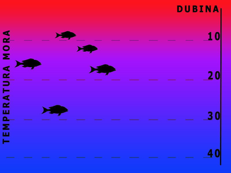 Jedna od najvažnijih pojava vezanih za lov na ribu poglavito zubace. Termoklina je promjenjiva linija temperature koja dijeli dva sloja mora, hladno i toplo. Razlika je nekad znatna i po 5 stupnjeva što je hladnokrvnim ribama jako interesantno jer im metabolizam puno bolje funkcionira u toplijem moru. Ribe koje vole živjeti u dubljem moru (ne toliko dubokom) obožavaju termoklinu koja se spusti preko 15 metara dubine. To se događa upravo u ovom razdoblju jer se more tek počelo zagrijavati. U ovo doba godine zubace ćemo pronaći najpliće jer se drže poviše sloja termokline. Ali istodobno to ima i suprotan efekt jer ako zubace malo preplašimo oni će proći taj sloj i jednostavno nestati. Rijetko kad se uhvati zubatac na čeku koji se nalazi ispod sloja termokline a takav ulov se ostvaruje jedino onda kada je termoklina prilično visoko od njihovog područja. Kako termoklina pada tijekom ljeta i tone sve dublje i dublje zubaci će je pratiti. Obično je do kraja ljeta termoklina negdje na 20-tak metara, no sve ovisi od sezonama. Prošle godine termoklina se nakon jedne bure sredinom ljeta naglo digla u pliće pa je nakon tog dana lov na zubace bio je jako slab sve do sredine jeseni kada je taj lov naravno zbog približavanja zime opet bio kratkotrajan.