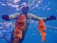 Velik broj slika škarpina u ovom tekstu ili u drugim ribolovnim literaturama sigurno može dovesti do krivog zaključka. Prava istina je da je jako teško uhvatiti škarpinu u podvodnom ribolovu. Ići loviti isključivo ovu ribu nije nešto što će početnici u ovom sportu činiti, no sigurno da se kod nekih oku sumnjivih procjepa treba pogledati i postoji mogućnost da nam dan prođe u lijepom pamćenju. Najčešći ulov škarpine koji ćete ostvariti je onaj sasvim slučajan kada ćete je skoro pa rukom dotaći prije nego je primijetite. Ako ugledate škarpinu na dnu možete slobodno izroniti i uhvatiti je prilikom sljedećeg zarona jer jako rijetko će se pomaknuti. Otegnite laštike na prednju kukicu da eventualni udarac u kamen ne bi istupio strijelu i pogledajte sa koje strane je najbolje ciljati da bi vam strijela prošla dovoljno kako bi se pero otvorilo. To je najčešća greška koju ljudi rade jer gađati škarpinu iza koje se odmah nalazi kamen je jako loša solucija. A izvaditi je iz dubine i pogledati trenutak kada se zacrveni je nešto prekrasno i zbog toga se isplati biti ribolovac.