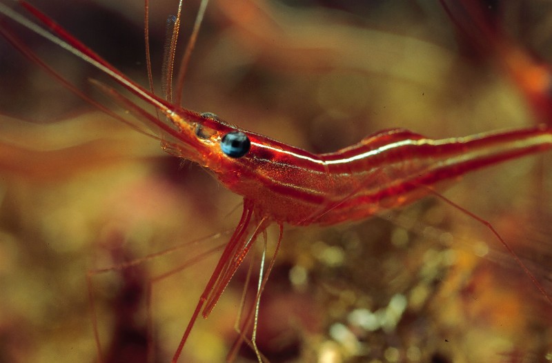 Opis: Klasični oblik kozice.Izdužena bodlja na glavi. Velika i izražajna tri ticala bijele boje. Crvene i bijele uzdužne pruge po tijelu.