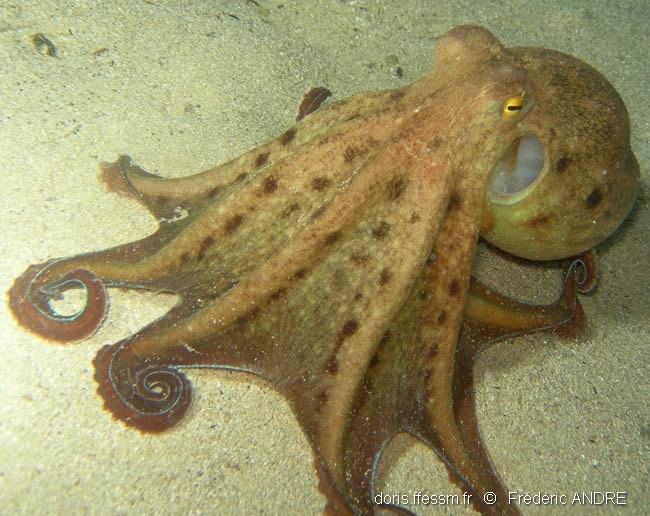 Opis: Osam krakova sa jednorednim prijanjaljkama. Krakovi 4-5 puta duži od tijela. Boja promjenjiva sa okolišem. Često je dok je živ istočkan tamnim mrljama..